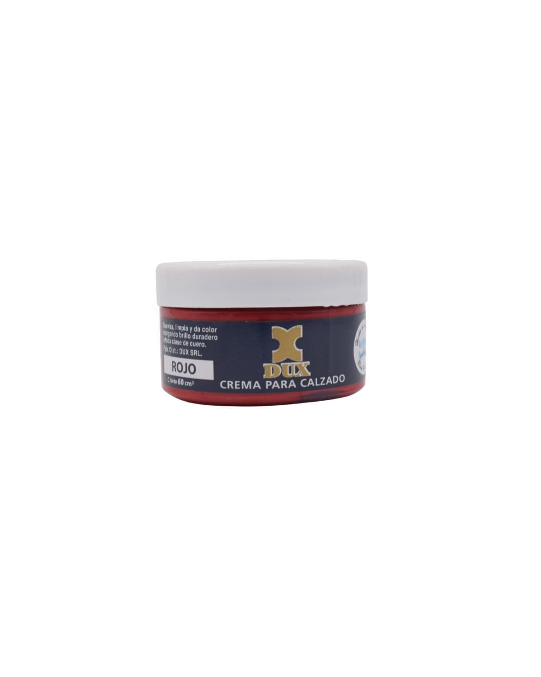Crema para calzado color rojo de la marca Dux, ideal para suavizar, limpiar y reavivar el color del cuero. Otorga un brillo duradero y protección en cada uso. Apta para todo tipo de calzado de cuero.