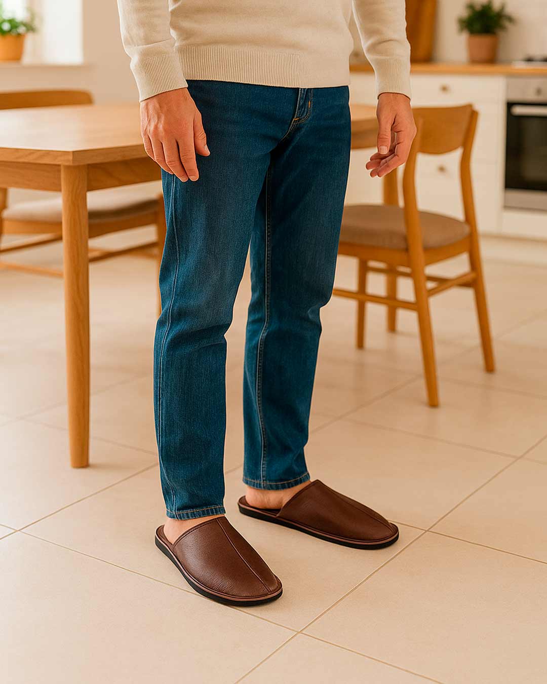 Pantuflas de cuero cómodas y elegantes, diseñadas para brindar máxima suavidad y confort. Ideales para relajarte en casa con un toque de estilo y durabilidad. Su diseño práctico permite un calce fácil y un ajuste perfecto.