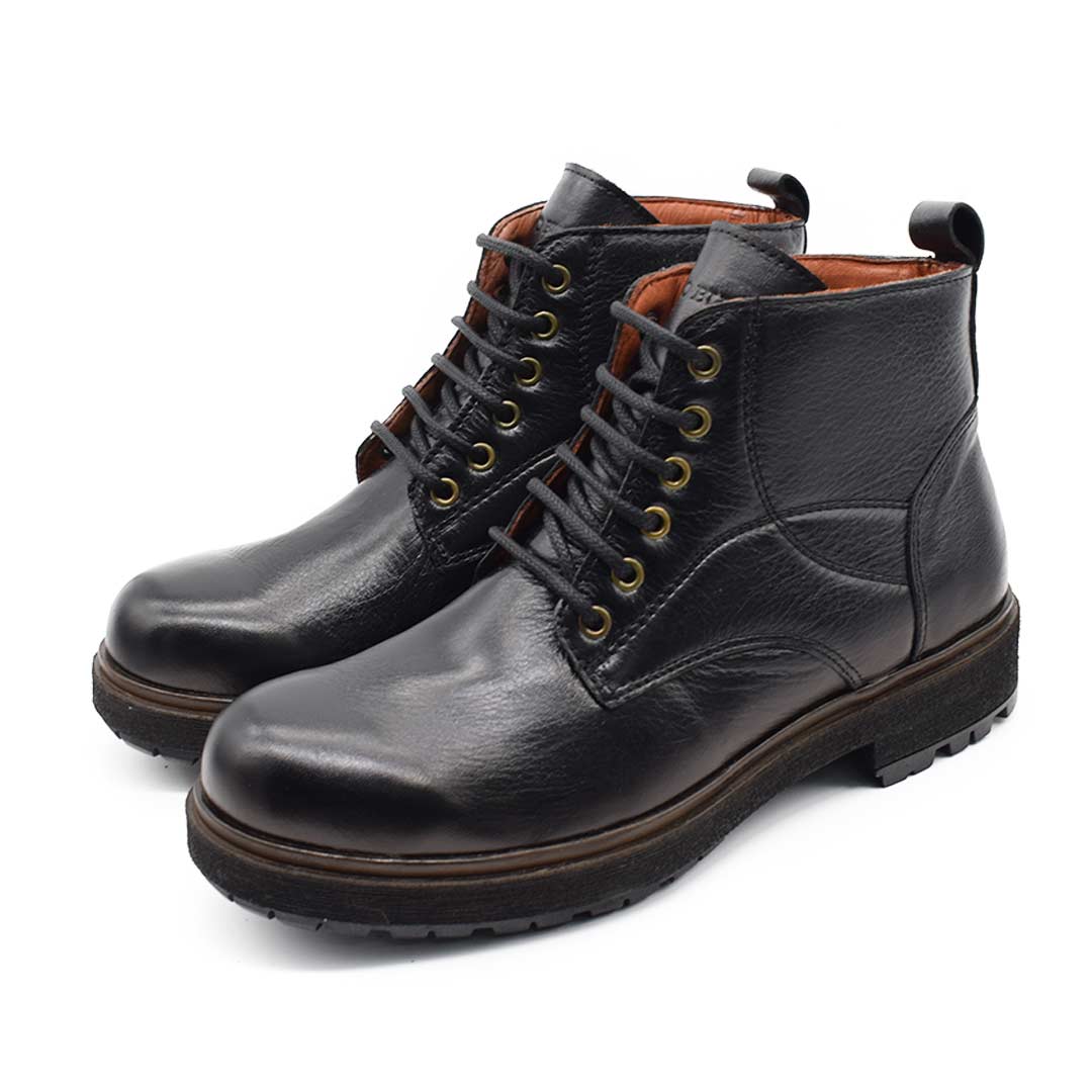 Un modelo de perfil clásico y construcción sólida, ideal para quienes priorizan durabilidad y estilo discreto. Este borcego combina una base de cuero con cordones reforzados, pasadores metálicos y una suela con buen agarre, perfecta para el uso diario o condiciones más exigentes. Su diseño sin cierres aporta una estética limpia y tradicional.