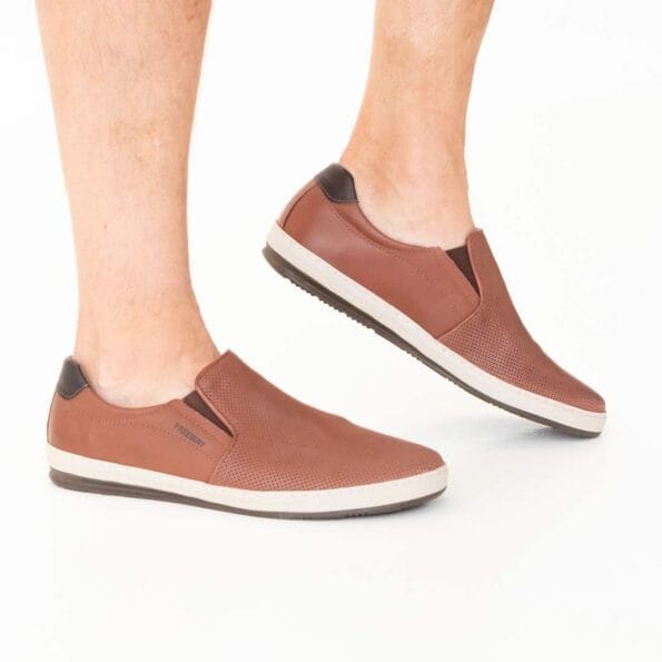 Náutico urbano en cuero color terracota con detalles en marrón, diseñados para quienes buscan estilo y comodidad. Su material perforado permite una excelente ventilación, mientras que su suela resistente y flexible ofrece seguridad en cada paso.