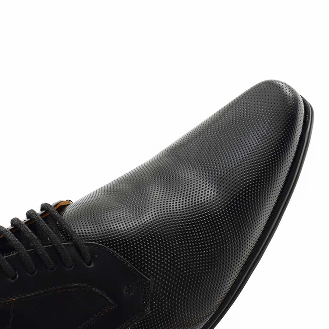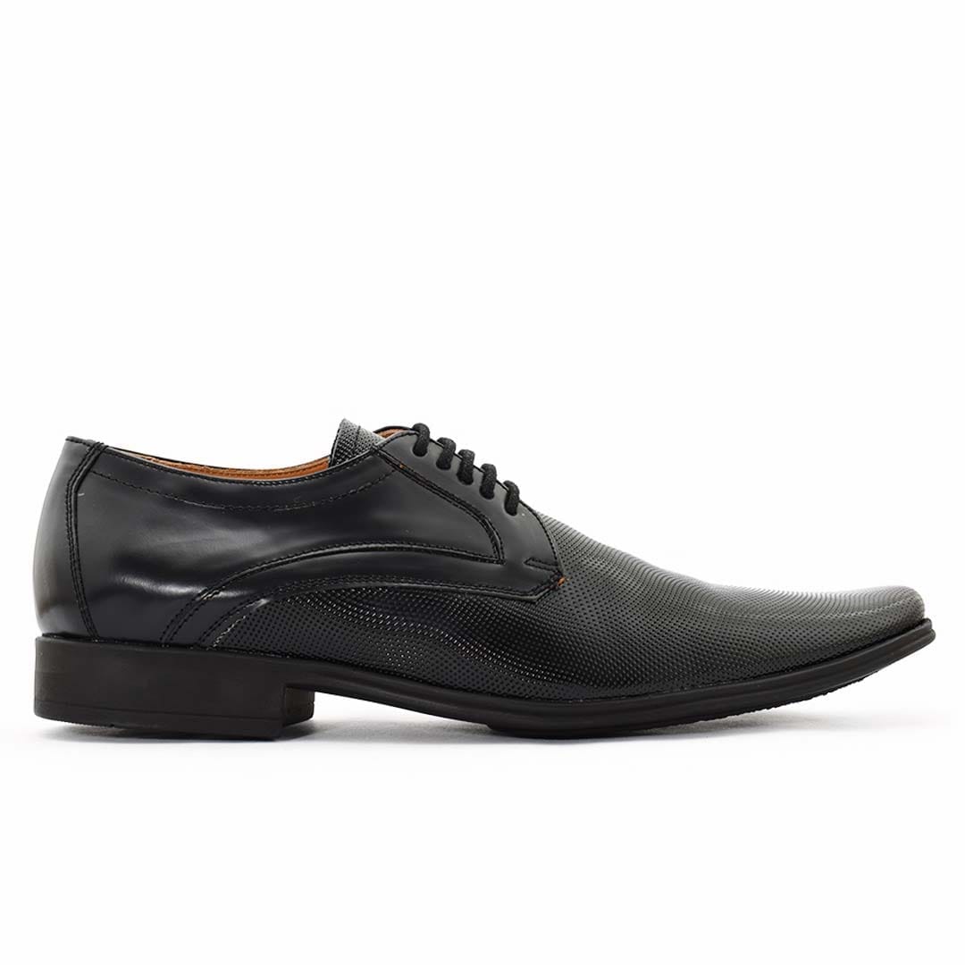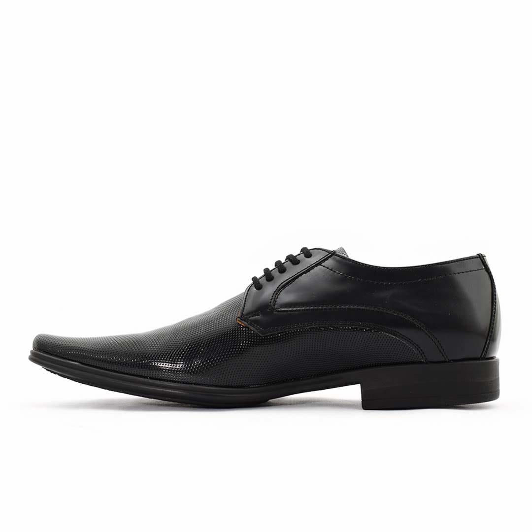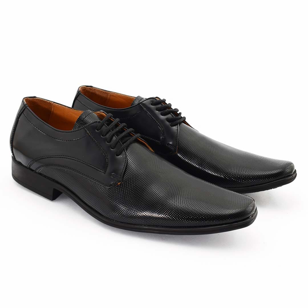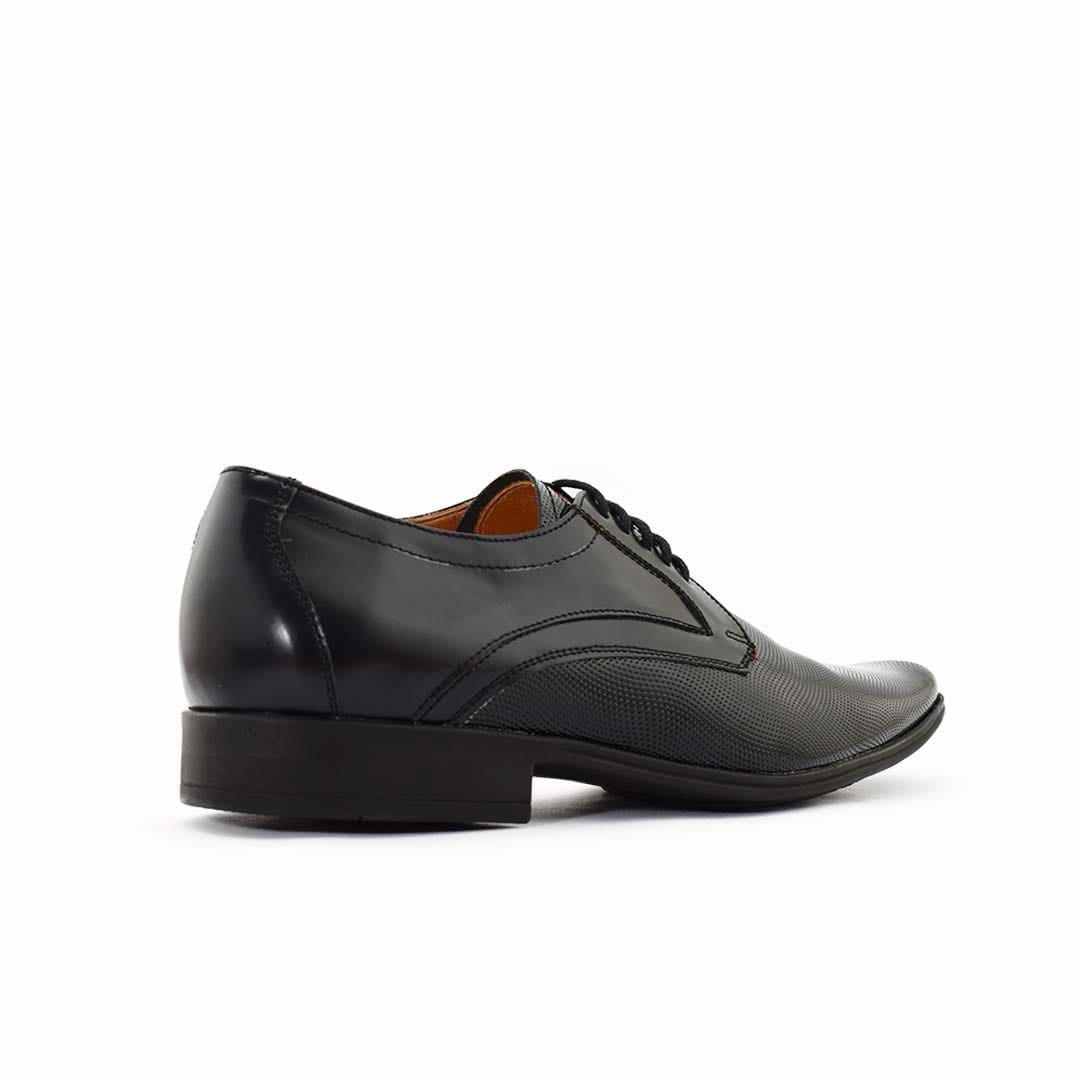 Zapato formal negro con textura elegante, ideal para eventos especiales o el entorno profesional. Su diseño detallado y moderno le da un toque distintivo que resalta la sofisticación en cualquier atuendo.