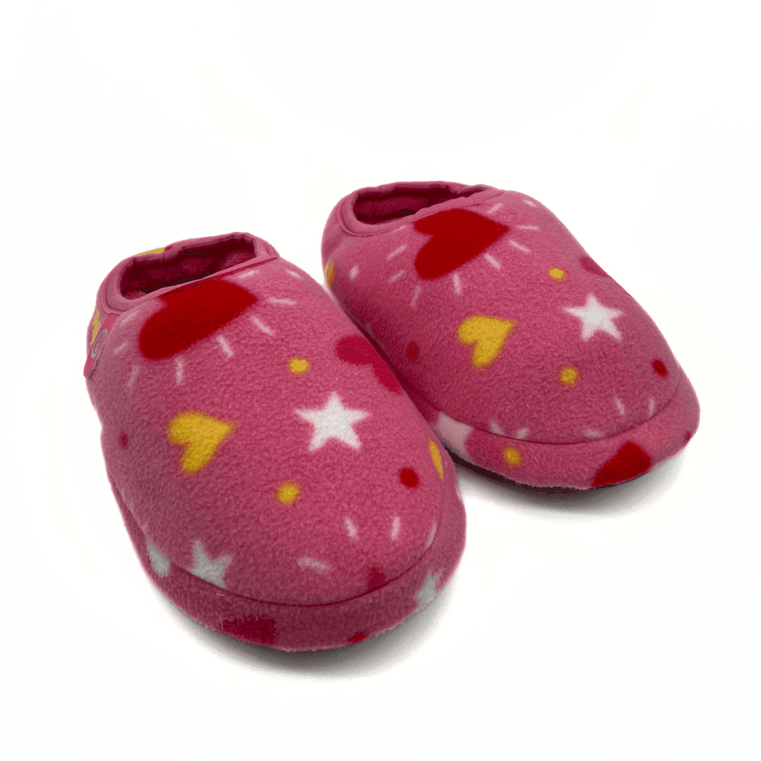 Pantuflas de felpa en color  rosa con detalles de corazones y estrellas muy cómodas y delicadas!