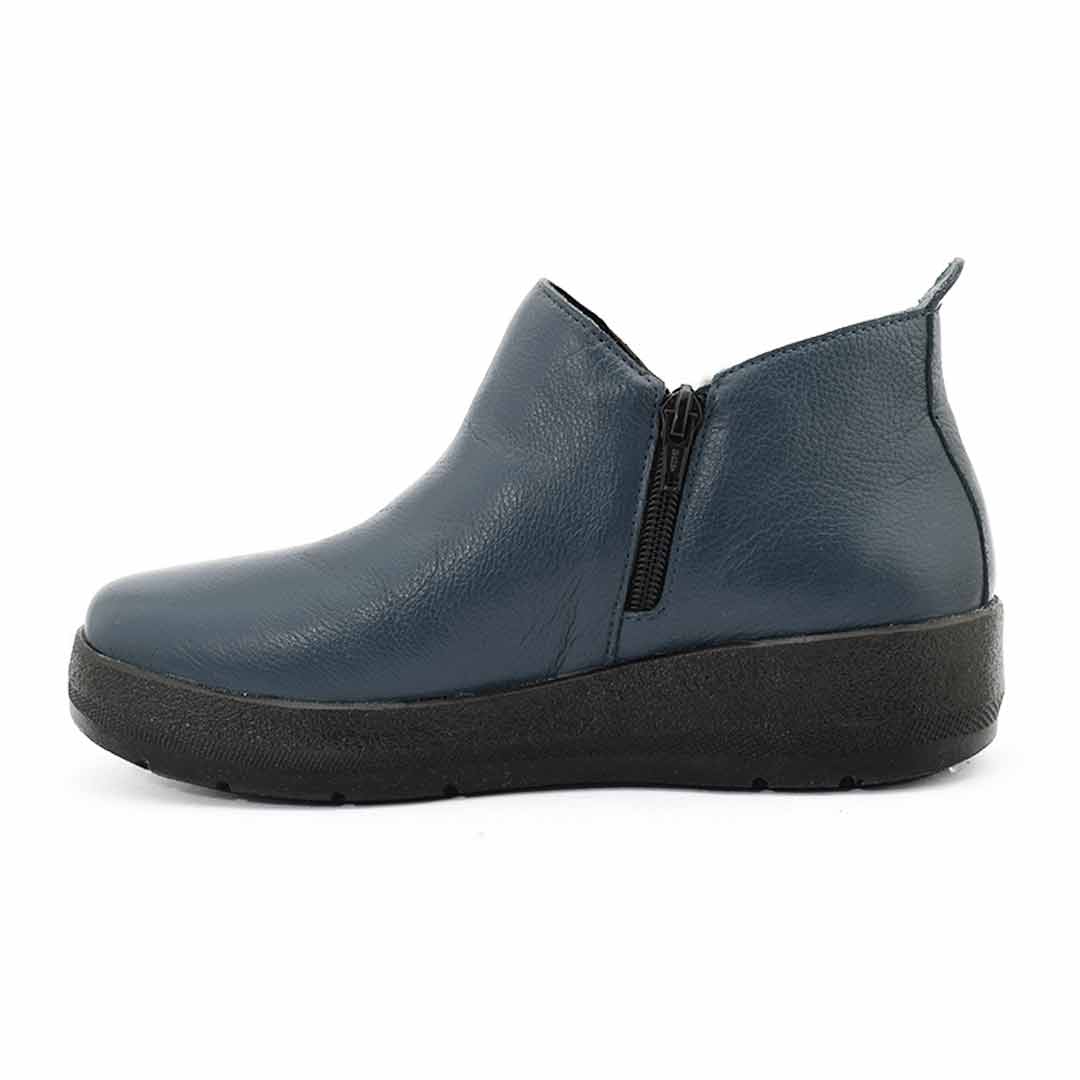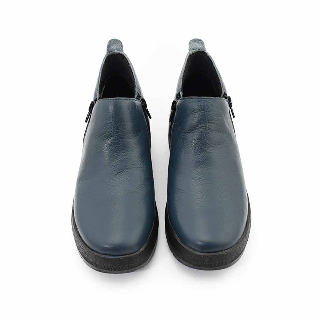 El diseño simple pero moderno de estas botinetas las hace fáciles de combinar con distintos outfits, desde jeans hasta vestidos casuales. Confeccionadas en cuero suave de alta calidad, incorporan una base negra con leve plataforma que brinda estabilidad y confort para el uso diario.