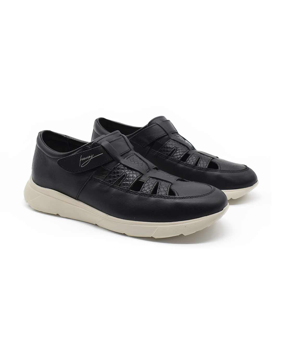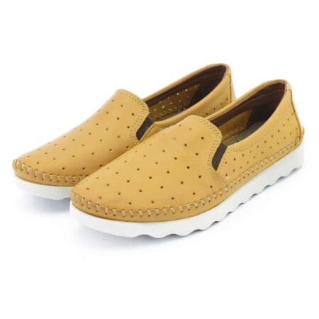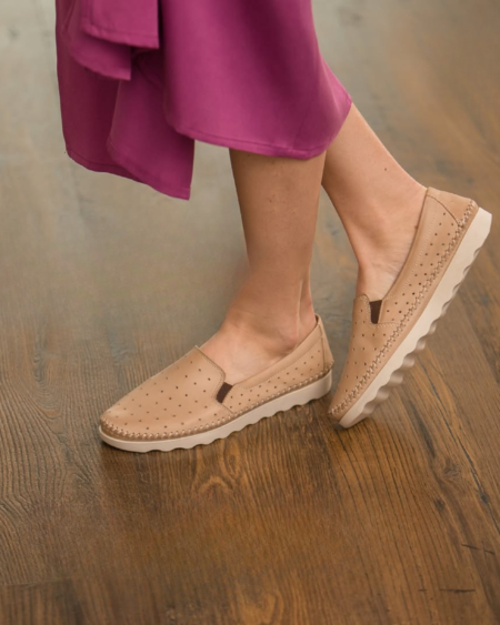 Confeccionado en cuero legítimo. Su diseño calado combina estilo y frescura, ideal para los días cálidos, mientras que la base ligera con suela antideslizante garantiza comodidad y seguridad en cada paso. El cierre con abrojo permite un ajuste práctico y personalizado. Perfecta para el uso diario, ofrece un calce confortable y un look versátil que se adapta tanto a salidas casuales como a momentos de paseo.