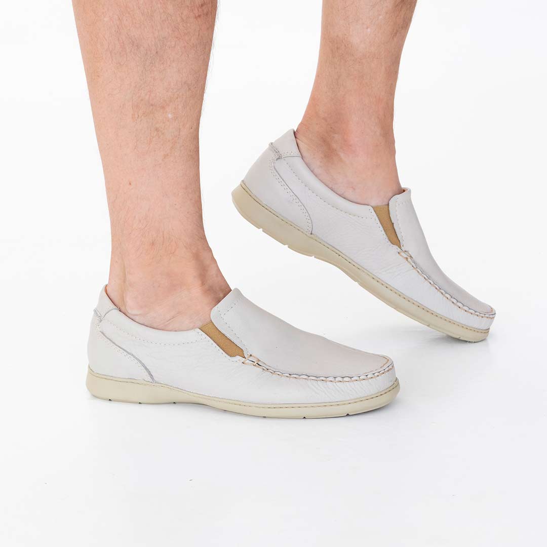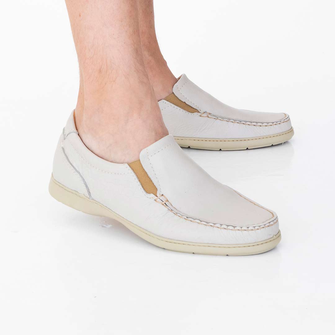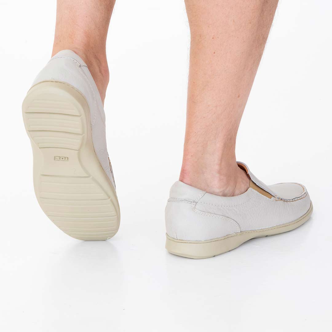 Náuticos en color natural con costuras en contraste y suela clara, ideales para un estilo casual y cómodo, combinando practicidad con un toque de elegancia. Su diseño sin cordones facilita el calce, mientras que la suela resistente proporciona confort y durabilidad.