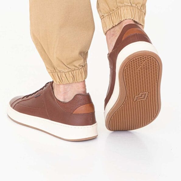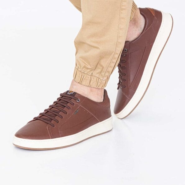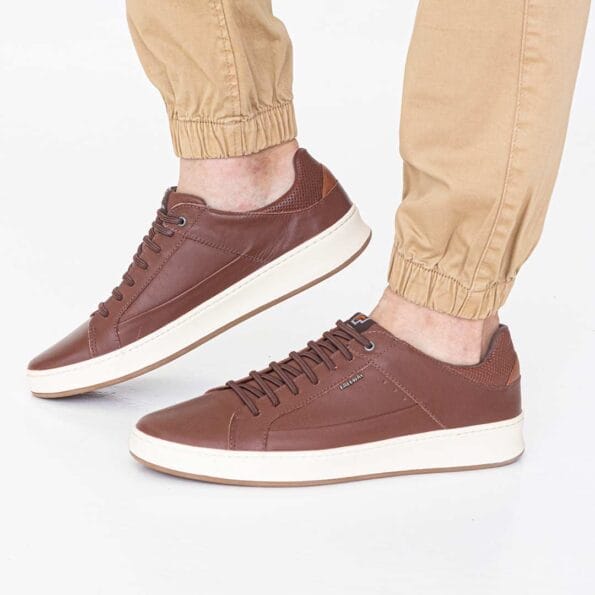 Zapatillas urbanas en color marrón, diseñadas con un estilo simple y elegante que se adapta a cualquier ocasión. La suela blanca y los detalles en el talón le dan un toque de contraste moderno. Ideales para quienes buscan un calzado versátil y cómodo para el día a día.