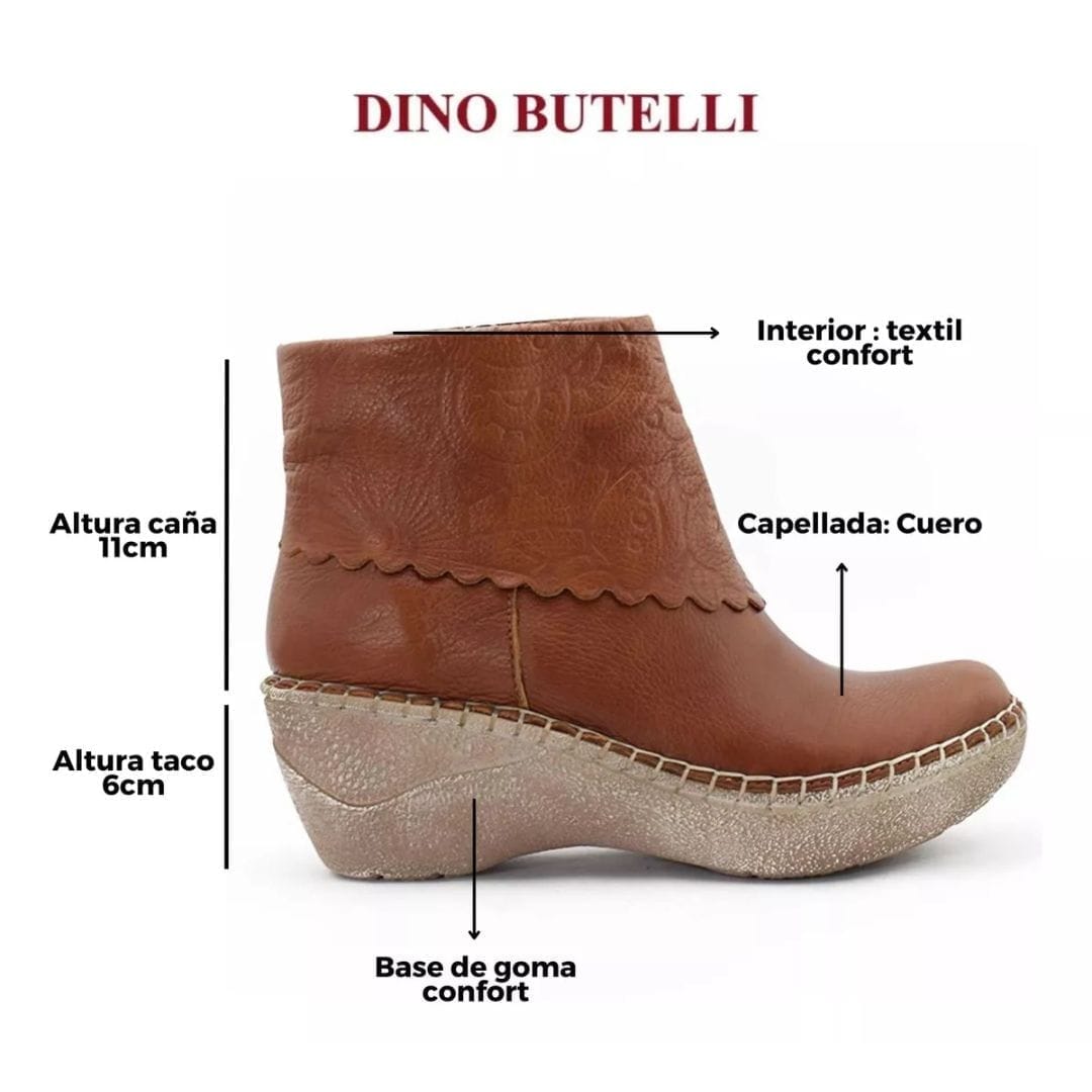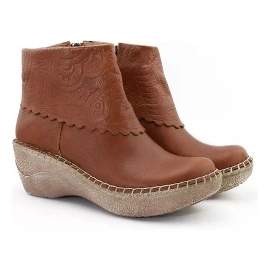 Descubre el equilibrio perfecto entre diseño, comodidad y calidad con estas exclusivas botas de cuero Claris. Su estilo artesanal con bordados florales y terminaciones onduladas las convierte en un calzado único y elegante. La plantilla de microdensidad acolchada proporciona un confort inigualable, absorbiendo el impacto en cada paso y asegurando una pisada más cómoda durante todo el día. Además, su plataforma ergonómica y suela antideslizante garantizan estabilidad y seguridad sin renunciar al estilo.