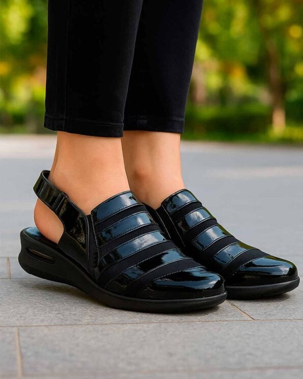 Zapatos calados mujer Juliana cuero neopreno charol negro