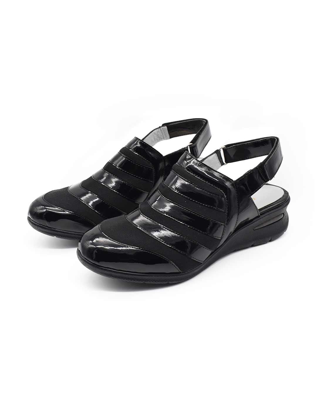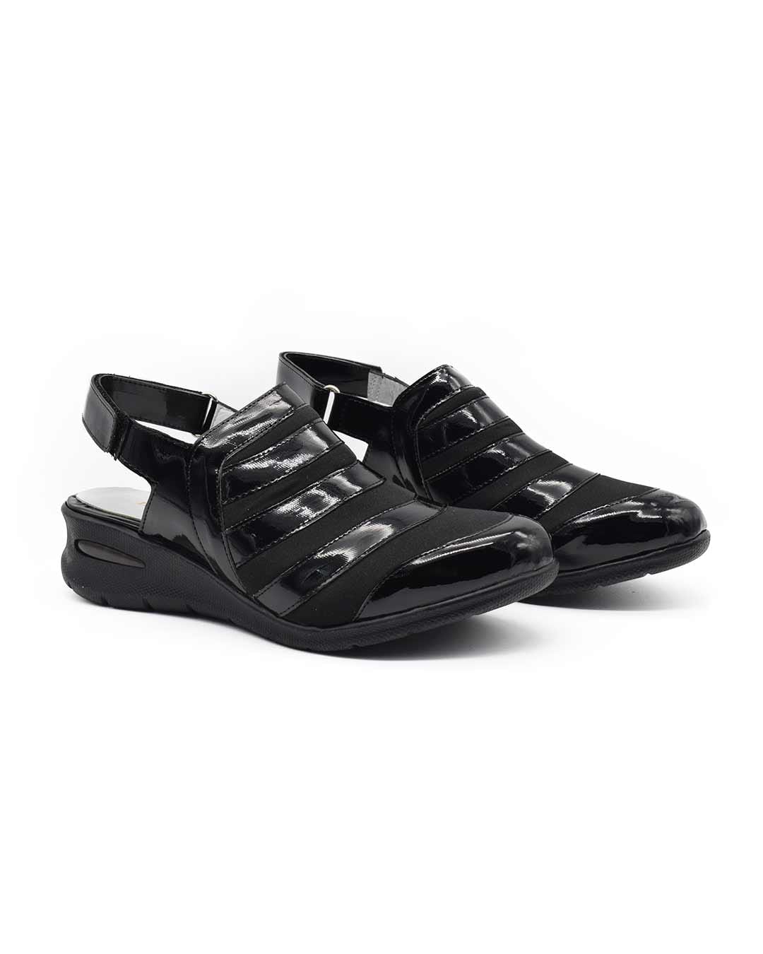 Zapatos calados mujer Juliana cuero neopreno charol negro