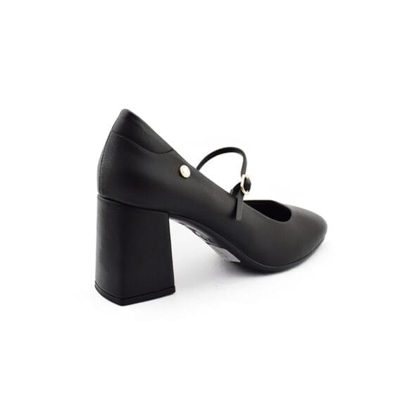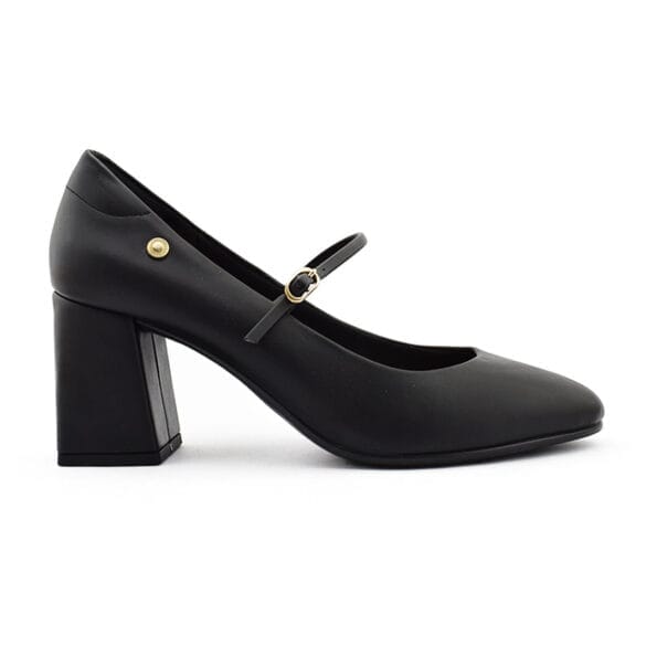 Este elegante zapato incorpora una delicada pulsera con hebilla dorada, un detalle que aporta estilo clásico y femenino. El diseño de punta redonda y el taco ancho alto lo hacen ideal para usar todo el día sin perder elegancia ni confort.